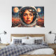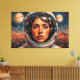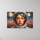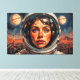 This digital artwork by Otis Porritt presents a striking close-up of an astronaut helmet. Her face, rendered with expressive, painterly strokes in warm skin tones and deep blues for her eyes, gazes upwards with a sense of wonder. The helmet's visor reflects a vivid blue sky, mirroring the expansive, brushstroke-textured sky above a desolate, sandy landscape. The impasto-like technique, characteristic of digital art mimicking traditional painting, gives the piece a dynamic and tactile quality, emphasizing the contrast between the detailed figure and the vast, unknown environment.