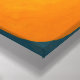 Large indigo overlaps smaller ochre against warm orange haze. Edges dissolve; lines fade. No "this side" or "that side"—only coexistence in teal shadows.