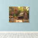 A folhagem do outono mostra cores brilhantes ao longo de uma estrada rural nas Montanhas do Enfumaçado. A Cabina Tipton está localizada em Cades Cove e é bonita em todas as quatro estações.