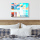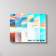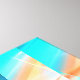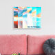Uma representação colorida e altamente abstrato de um pôr do sol. As cores vão do azul do céu, ao amarelo do Sol, às nuvens laranja e vermelha no horizonte. Adicione seu próprio texto.