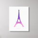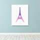 Este design apresenta uma Torre Eiffel abstrato em roxo e rosa.