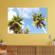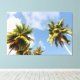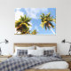 Lose yourself in a state of perpetual summer with this vibrant photograph. This stunning perspective looks up from below, gazing at the majestic crowns of several palm trees. The bright green and golden fronds are beautifully illuminated by a warm sun, reaching towards an infinitely blue sky. Soft, white clouds drift lazily in the distance, completing the quintessential vacation scene. Perfect for those who crave the soothing, breezy energy of the tropics, this artwork brings a sense of expansive, sunny freedom to any space. It’s an ideal piece of nature photography for creating a relaxing and positive atmosphere in a home office, bedroom, or living area.