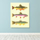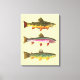 As lindas cores da Truta Brook, da Truta Arco-Íris e da Truta Marrom. Fotos de três pinturas originais de aquarela pelo Sr. Trout Whiskers. Perfeito para sua casa, escritório, chalé, cabana e outros interiores. Faz um presente excelente para fãs de pesca de mosca e para aqueles que amam pesca ou ictiologia. Veja mais designs de peixe no compro Trout Whiskers.