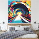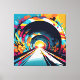 Uma pintura digital vibrante do Túnel Tran i. O túnel está coberto de grafites coloridos. A pintura captura a beleza e a energia do túnel