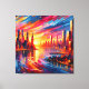 Um pôr do sol vibrante sobre uma paisagem urbana frágil, com matizes cor de laranja quente e cor-de-rosa refletindo arranha-céus de vidro.