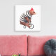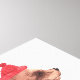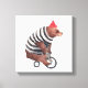 Esta design apresenta uma ilustração aquosa de um urso numa bicicleta vestindo um suéter listrado e um chapéu vermelho.