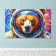 Esta impressionante obra de arte de Otis Porritt apresenta um urso em um capacete de astronauta, seu olhar direto e cativante. A pelagem do animal é representada com uma rica tapeçaria de pinceladas texturizadas em laranjas, amarelos e marrons quentes, criando um efeito vibrante e quase impasto. Azuis e roxos frios definem o focinho, contrastando com os tons ígneos da pelagem. O visor reflexivo do capacete emoldura o rosto do urso, enquanto o fundo rodopia com pinceladas dinâmicas de azul-turquesa e azul profundo, evocando uma extensão cósmica. O meio digital captura magistralmente uma estética pictórica.