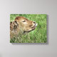 Um lindo bezerro bonito deitado em erva longa com sua língua saindo.