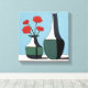 Canvas em estilo Boho moderno, ilustração minimalista de dois vaso preto e branco segurando flores vermelhas