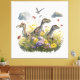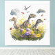Dinossauros, velociraptores correndo por um campo, Pteranodon no céu. Celebre os Dias do Dinossauro em agosto.