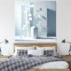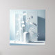 Eine minimalistische Stilllebenkomposition mit skulpturaler Klarheit: Weiße Orchideen entfalten sich in einer matten Vase vor einem Hintergrund aus vertikal gestaffelten Paneelen. Die Lichtführung ist sanft und präzise, die Schatten betonen die räumliche Tiefe. Die Szene bleibt monochrom und ruhig – ein Bild, das florale Präsenz mit architektonischer Struktur verbindet. Ideal für Räume, die auf Reduktion und Atmosphäre setzen.
