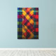 Elevate your space with "Interwoven Heritage," a stunning vertical canvas that reimagines traditional plaid through a vibrant, modern lens. This artwork features an intricate dance of overlapping tartans in a high-energy palette of fiery orange, deep teal, rich magenta, and forest green. The layered, geometric composition creates a sense of tactile depth, making it a captivating focal point for any room that celebrates bold patterns and rich color stories.