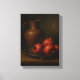 Uma composição clássica, ainda viva, com romãs vermelhos ricos e um jarro rústico em uma mesa de madeira, inspirada nos velhos mestrados shadowplay.
