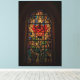 Esta tela mostra uma design de vitrine colorida que respira, apresentando uma rosa vermelha vívida com folhas verdes iluminadas pela luz do ouro. Os detalhes intrincados e as cores brilhantes evocam uma sensação de beleza eterno, elegância e calor espiritual, perfeito para aprimorar qualquer espaço interior.