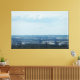 View across the industrial landscape of Teesside, incorporating Middlesbrough and Stockton On Tees, with the famous transporter bridge from the early 1900s, the much newer Riverside Stadium of Middlesbrough Football Club and modern wind turbines.