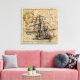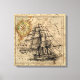 Impressão Em Tela Vintage Navio E Mapa