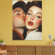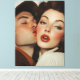 Um retrato de inspiração retrógrada captura o momento de um beijo delicado entre um homem e uma mulher. A iluminação suave e a paleta colorida evocam uma sensação de nostalgia, com a maquiagem marcante da mulher e os olhos fechados do homem a reforçarem o humor romântico.