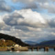 Vista do porto de Barmouth das montanhas, estuário e ponte ferroviária. País de Gales, Reino Unido.
