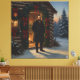 Embrace the festive spirit with this HD-quality masterpiece inspired by the classic American style of Eastman Johnson. A distinguished man stands at the warmly lit entrance of a Christmas-decorated log cabin, surrounded by snowy evergreens and lush wreaths with bold red ribbons. This artwork captures the nostalgia and joyful warmth of 19th-century American holiday traditions, inviting you to bring home the comfort and elegance of a timeless winter celebration.
