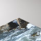 This beautiful canvas features a rocky seashore with swirling white water splashing against the rocks.