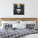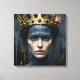 A portrait of a woman with dark blue/gray skin wearing a gold crown, with gold paint dripping down her face.