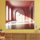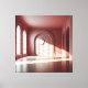 Eine ruhige architektonische Studie, in der Licht zur Struktur wird. Sanftes Tageslicht fällt durch hohe Rundbogenfenster und zeichnet präzise Schattenlinien auf die roséfarbenen Flächen. Das Zusammenspiel aus Geometrie, Tiefe und sanfter Farbigkeit verleiht diesem Motiv eine stille, zugleich eindrucksvolle Präsenz.