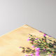 Fotografia de uma ovelha querida cercada por flores azuis e erva comprida.