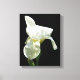Uma flor íris branca em fundo preto. Uma bela tela floral de decoração.