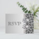 Cartões planos de casamento formal RSVP de prata, chá de fraldas neutro, festa de aniversário ou eventos corporativos com um lindo padrão prateado e preto de pele de leopardo, um arco e fita prateados brilhantes e brilhante e uma joia bonito impressa de diamante. Esses rsvps elegantes, glamourosos para casamentos e chás são decorados de ambos os lados. Bonita, chique, moda, convites modernos. Por favor, note: todos os convites para o Zazzle têm imagens impressas em formato plano. O texto, a fonte e a cor da fonte podem ser personalizados. Se precisar de ajuda para personalizar seu produto, entre em contato comigo através da minha loja. Ficarei feliz em ajudar. Tenho produtos correspondentes na minha loja.