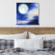 Impressão da Lua - design gráfica mestiça, montagem fotográfica digital melhorada da lua de cheio, rodeada por um halo fraco, contra um céu noturno azul profundo e nuvens iluminadas pela lua