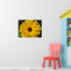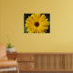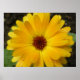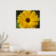 Esta bela impressão apresenta uma fotografia detalhada de um marigold amarelo com centro escuro. A fotografia foi tirada usando fotografia macro. Você pode ver todas as minúsculas gotas de água pousadas nas pétalas desta flor exquisita.
