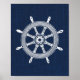 Roda náutica contra fundo azul-escuro. Adição perfeita a qualquer sala temática náutica.