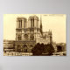 Uma impressão de Notre Dame em Paris, reproduzida a partir de um antigo cartão postal.