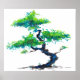 ilustração aquarela tradicional de uma bonsai em cores verde e azul como impressão poster