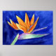 O fã vibrante, como a coroa de pétalas laranja de um pássaro de flor do paraíso, contrasta com o fundo azul real de pelúcia profunda. A pintura de flores de arte aquática apresenta uma visão de perfil do pássaro da flor do paraíso. Esta flor é conhecida como Flor de Crane na África do Sul. Personalize este pássaro da flor do Paraíso com a poster com a sua própria imagem com o seu próprio texto e imagens usando o botão "Personalizar" para criar um dom especial de flor do Paraíso ou fotos!