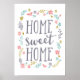 O impressão poster floral de lar doce apresenta a tipografia moderna escrita à mão e os florais bonito. Excelente para arte de sala de estar e fatos de um estilo decorativo moderno.