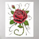 Um Design de estilo de tatuagem desenhado no modo "Tattoo Flash" da velha escola - uma Rosa vermelha delicada com cinza sábia Arte Tribal. Folhas verdes cercam a Rosa. Arte original criada em tinta e lápis coloridos por Gregg das cores profundas de Gregg.