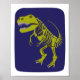 T-Rex dinâmico de 8" x 10" em verde-oliva em fundo azul-indigo escuro. Parece que o excelente está armado!