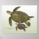 Esta ilustração detalhada de uma tartaruga verde adulta e juvenil é do artista Dawn Witherington.