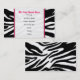 Um cartão de visita com um plano de fundo de impressão zebra, cor-de-rosa. Texto rosa e preto sobre branco puro. Personalize com suas informações. Para ajustar o texto ou alterar o tamanho, estilo ou cor da fonte, basta clicar em "personalizá-lo!"