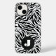 Uma capa de telefone de célula na moda apresenta o seu monograma inicial no padrão de impressão animal em zebra branca e preta. ESCOLHA SEU MODELO E ESTILO QUANDO ENCOMENDA! Crie ou dê como presente. Saco de gaveta, etiqueta de bagagem, malas e mais itens na nossa coleção de viagem.