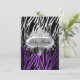 Convite para Chás de fraldas Roxos e Prateados. É uma garota! Bonito impressão zebra negra e brilho tiara e arco. Por favor, note: todas as imagens planas! Não têm arcos ou joias reais!