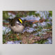 Reino coroado de ouro alimentando-se na grama coberta de neve.