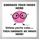Um design para todos os nerd lá fora (como eu!)! "ABRAÇA O SEU NERD INTERNO! A não ser que seja fofo.... ENTÃO EMBRAÇA O MEU NERD INTERNO!" Espalhe o amor do nerd com este design fofo, engraçado e incrível! Caractere 'Nerd interior' desenhado à mão e colorido digitalmente. Copyright 2013 por Sunny