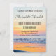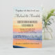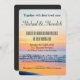 Linda foto da praia do pôr do sol. O convite perfeito para o seu casamento à beira da praia.