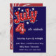 Big red July fourth bubble letters appear on the front of this Independence Day party invitation that you can fully customize. The reverse of this invitation features red, white and blue fireworks.