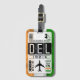 Terra em DEL, Deli na Índia e seja o primeiro a colocar sua bagagem no carrossel com esta legal etiqueta de bagagem. Esta etiqueta inclui informações autênticas sobre o aeroporto e uma bolsa de dados no verso.