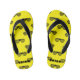 Chinelos de praia amarelos personalizados para crianças no verão. Sandálias fofas com o nome da criança. Ideia de presente de aniversário divertido para meninos e meninas. Ótimo para verão, praia e festa na piscina. Chinelos com estampa de óculos de sol com nome personalizado.