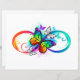 Multicor, brilho, símbolo de infinidade com arco-íris, monarca de borboleta detalhada. Borboleta-arco-íris. Arco-íris infinito.