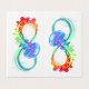 Símbolo multicolorido infinito com águas-vivas brilhantes do arco-íris decoradas com tentáculos longos em fundo branco. Água-viva arco-íris.